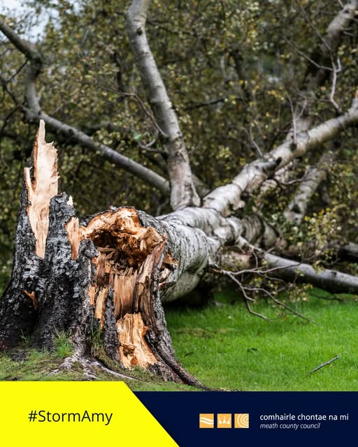 Meath County Council is advising all road users to take extra care as Storm Amy continues to cause disruption across the county. Several fallen trees and obstructions have been reported.