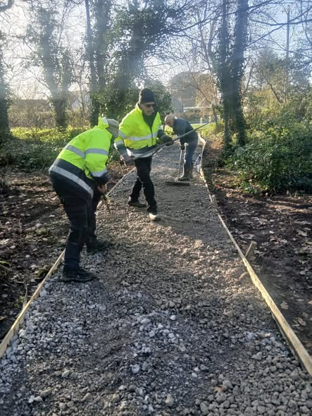 Great work is currently underway in Whitecross Woods, thanks to the efforts of Colm, Bob, Gerard, Omar, and Paul, who have been busy improving the area for the community.