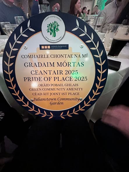 Aisling Monahan (Chairperson) Julianstown & District Community Association and Niamh Bn. Uí Loinsigh (Vice Chair) were delighted to be invested to Maynooth University Campus for the awards event. There they were awarded their Green Flag Award for the Julianstown Community Garden for 2025/26. As well as this they were also awarded with a highly commended award from Biodiversity Ireland for the Community Garden. Aisling said “A very big thank you to everyone for all your support, ideas and efforts during the past year in helping us achieve the Green Community Amenity Award for our wonderful Garden. We are a great team full of talent in so many ways. We have lots of ideas for next year and welcome all input. Julianstown is regarded as a very special community by people near and far and it’s wonderful to be part of it”.
