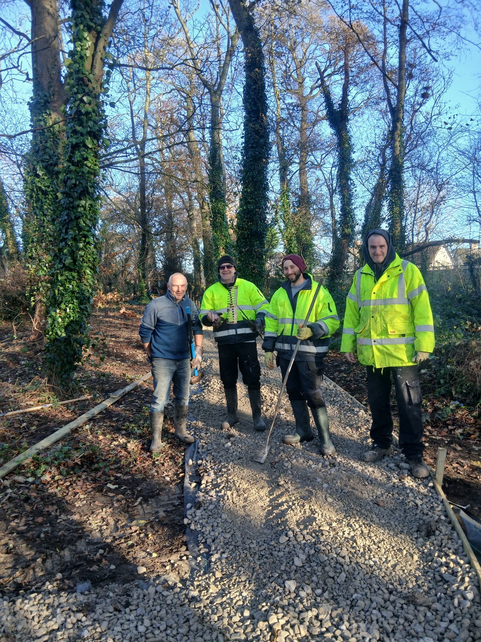 Great work is currently underway in Whitecross Woods, thanks to the efforts of Colm, Bob, Gerard, Omar, and Paul, who have been busy improving the area for the community.