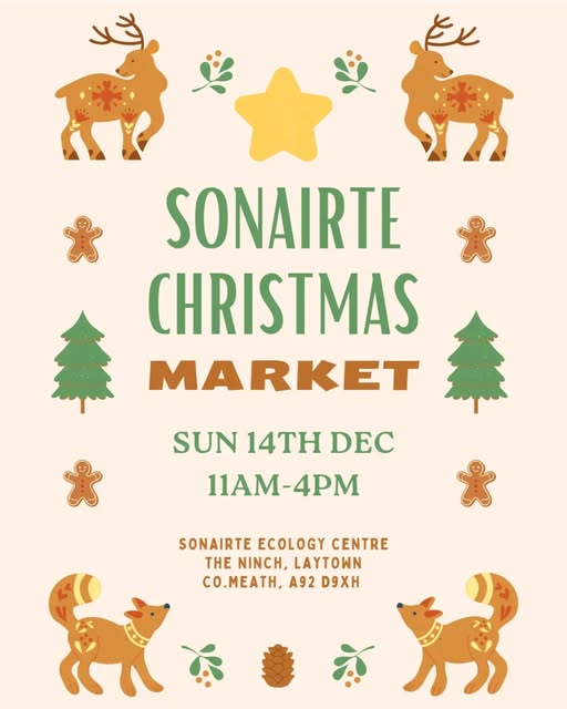 We're sharing some great news from the Sonairte Eco Centre! Get ready to kick off the festive season at their much-loved annual Christmas Market. It promises to be a fantastic day filled with unique crafts, local goods, festive cheer, and a wonderful community atmosphere, making it the perfect spot to find gifts and support local makers.