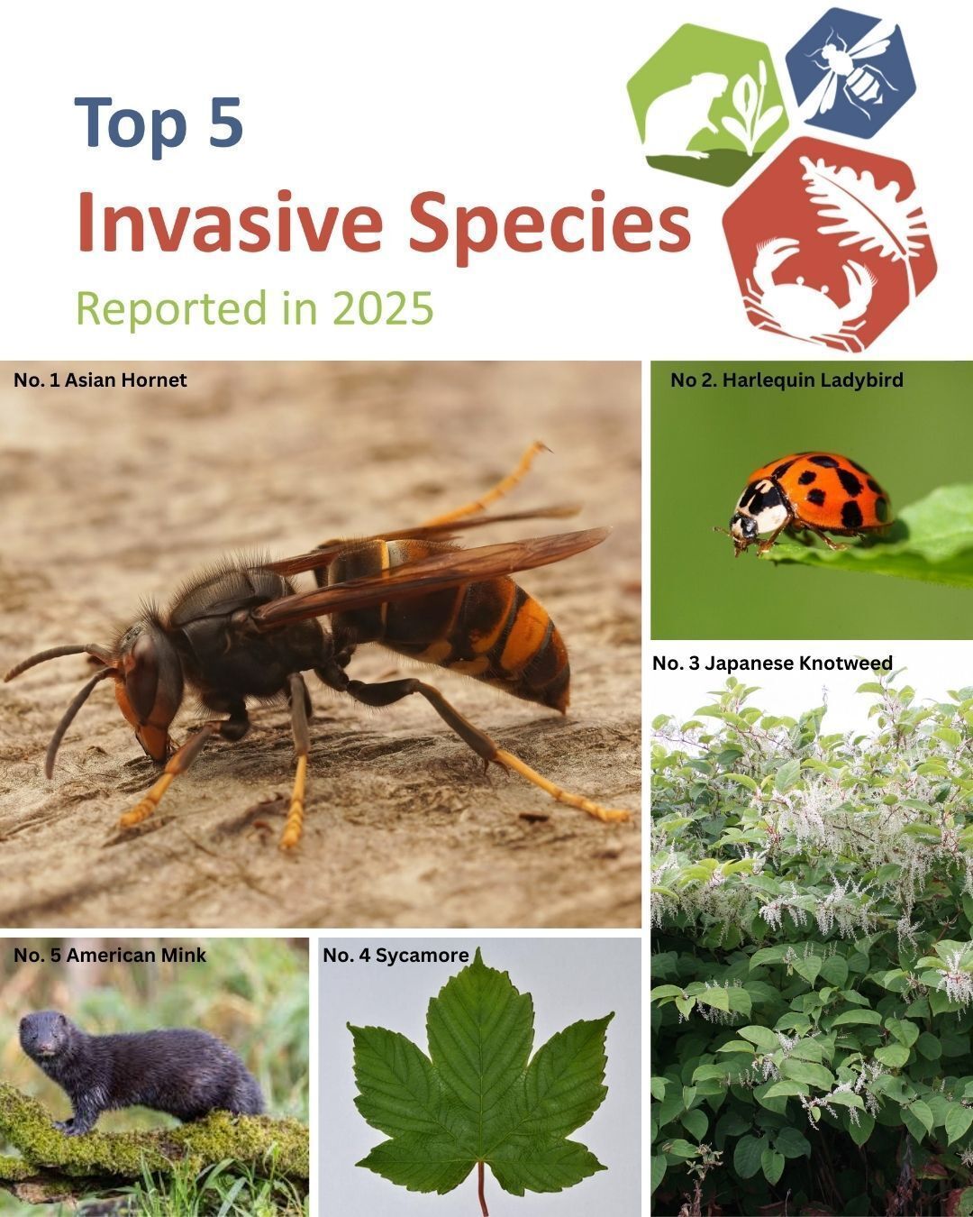 The most commonly reported invasive plant was Japanese knotweed (Fallopia japonica), while the Asian hornet (Vespa velutina) was the most frequently reported invasive animal. Of the reports received, 36 Asian hornet sightings were verified.